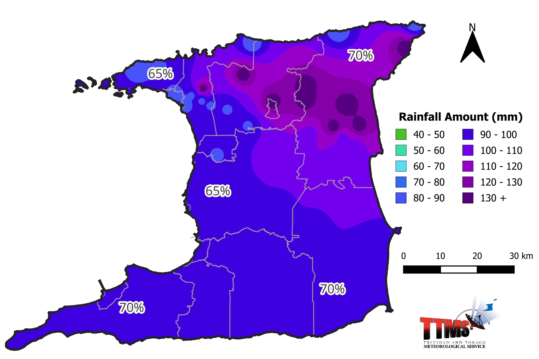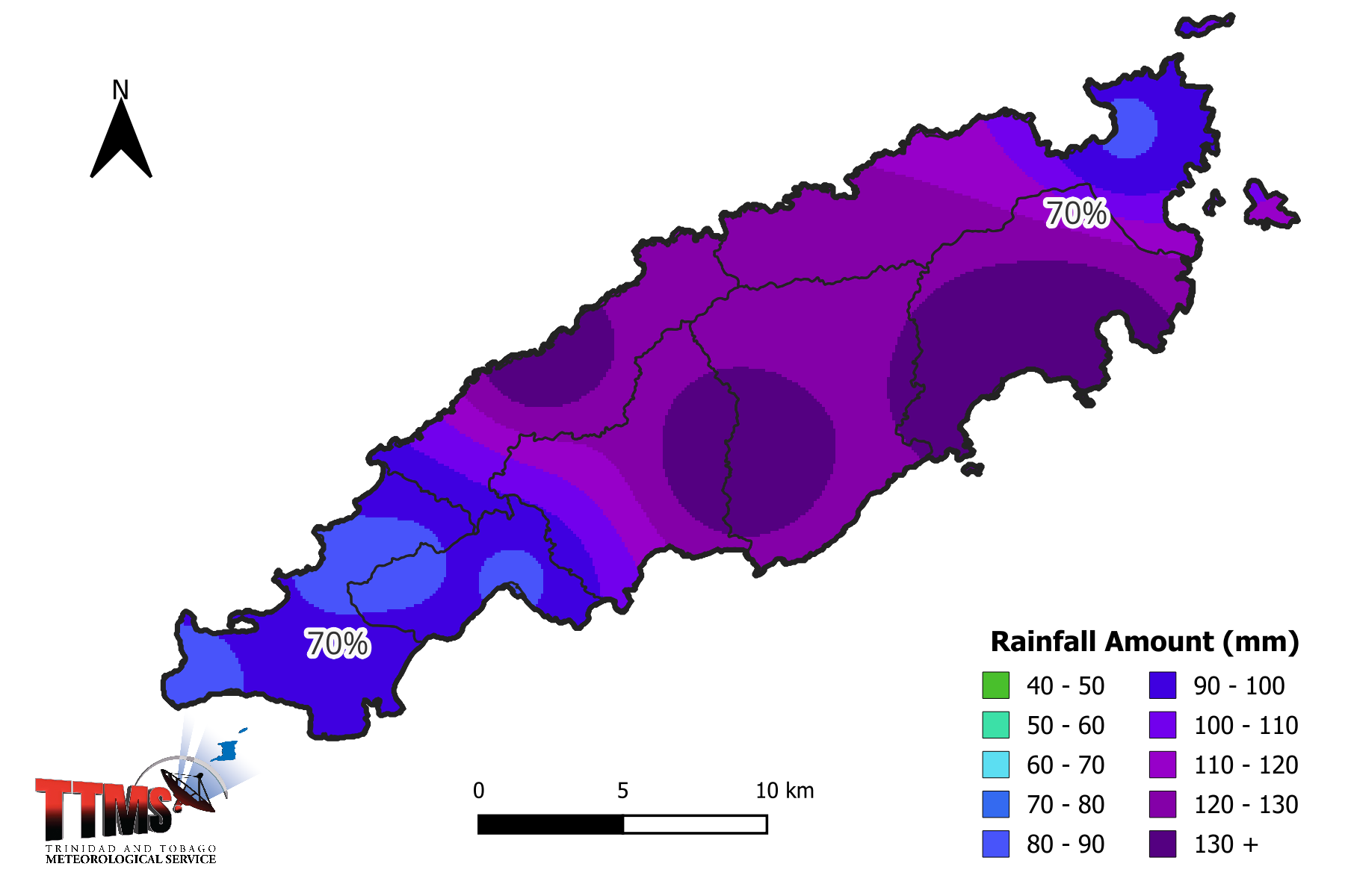 70% chance of rainfall