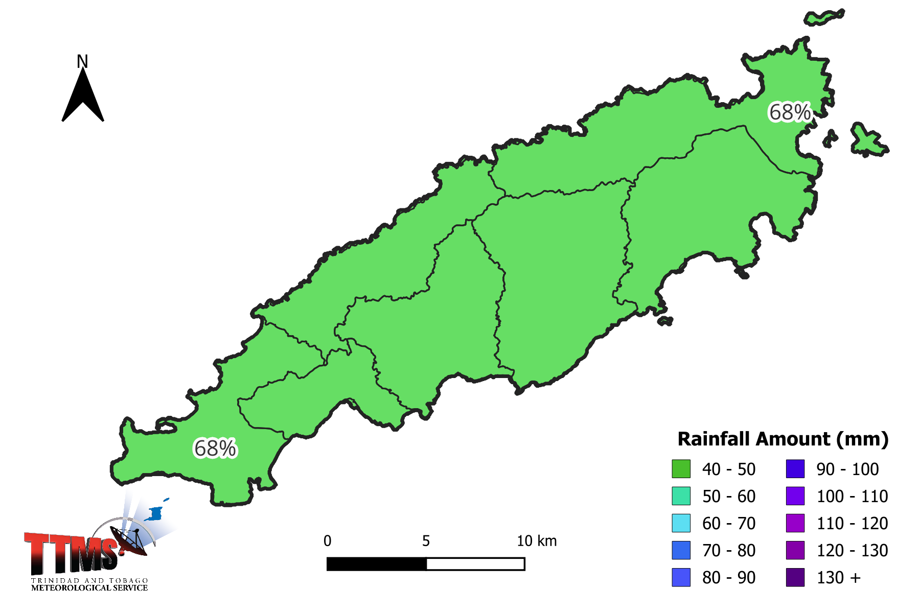| 1-9 mm of rainfall is possible | Partly to mostly cloudy, breezy, few showers particularly south Trinidad |