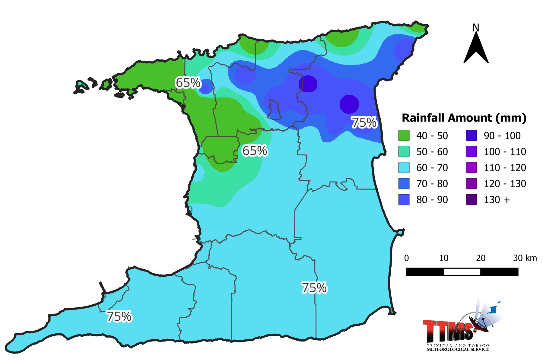 30% chance of rainfall