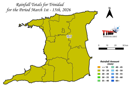 Trinidad Rainfall Forecast for the 15-Day period of March (16th to 31st) 2026.