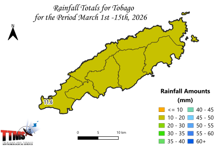 Tobago Rainfall Forecast for the 15-Day period of March (16th to 31st) 2026.