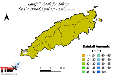 Tobago Rainfall Forecast for the 15-Day period of April (16th to 30th) 2026.