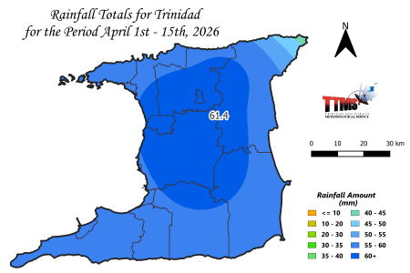 Trinidad Rainfall Forecast for the 15-Day period of April (16th to 30th) 2026.