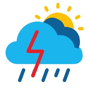 Mostly cloudy, isolated heavy shower, thunderstorm