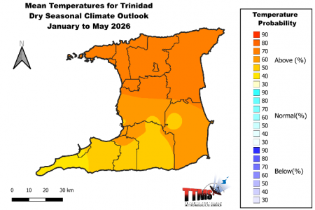 The Temperature Outlook Favours Above Normal Temperatures over Trinidad and Tobago for Dry Season 2026.