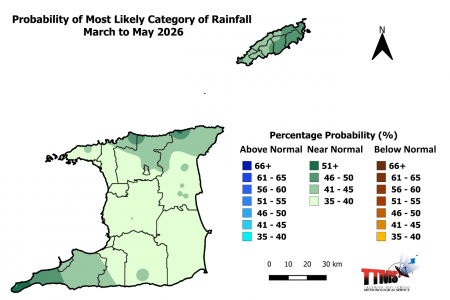 - The March to May 2026, rainfall outlook indicates that near-normal rainfall amounts are likely across Trinidad and Tobago.