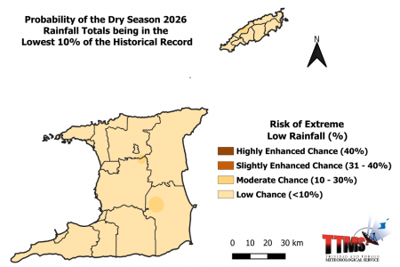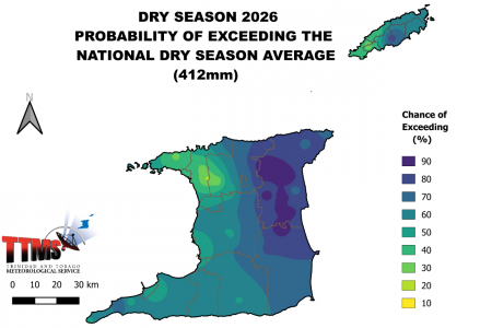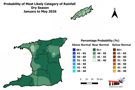- The 2026 Dry Season rainfall outlook indicates a strongly enhanced signal for near-normal rainfall amounts across Trinidad and Tobago.